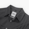 Kemeja yang terbuat dari katun twill dengan ketebalan kemeja pada umumnya dan tidak menerawang. Potongan oversize menghadirkan siluet yang lebih rileks dan modern.