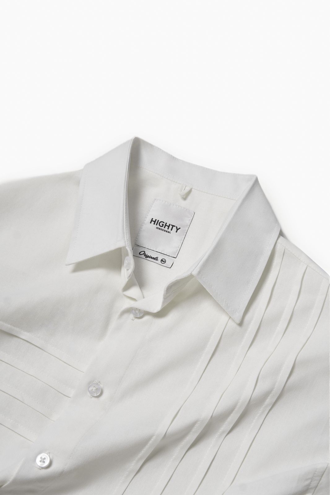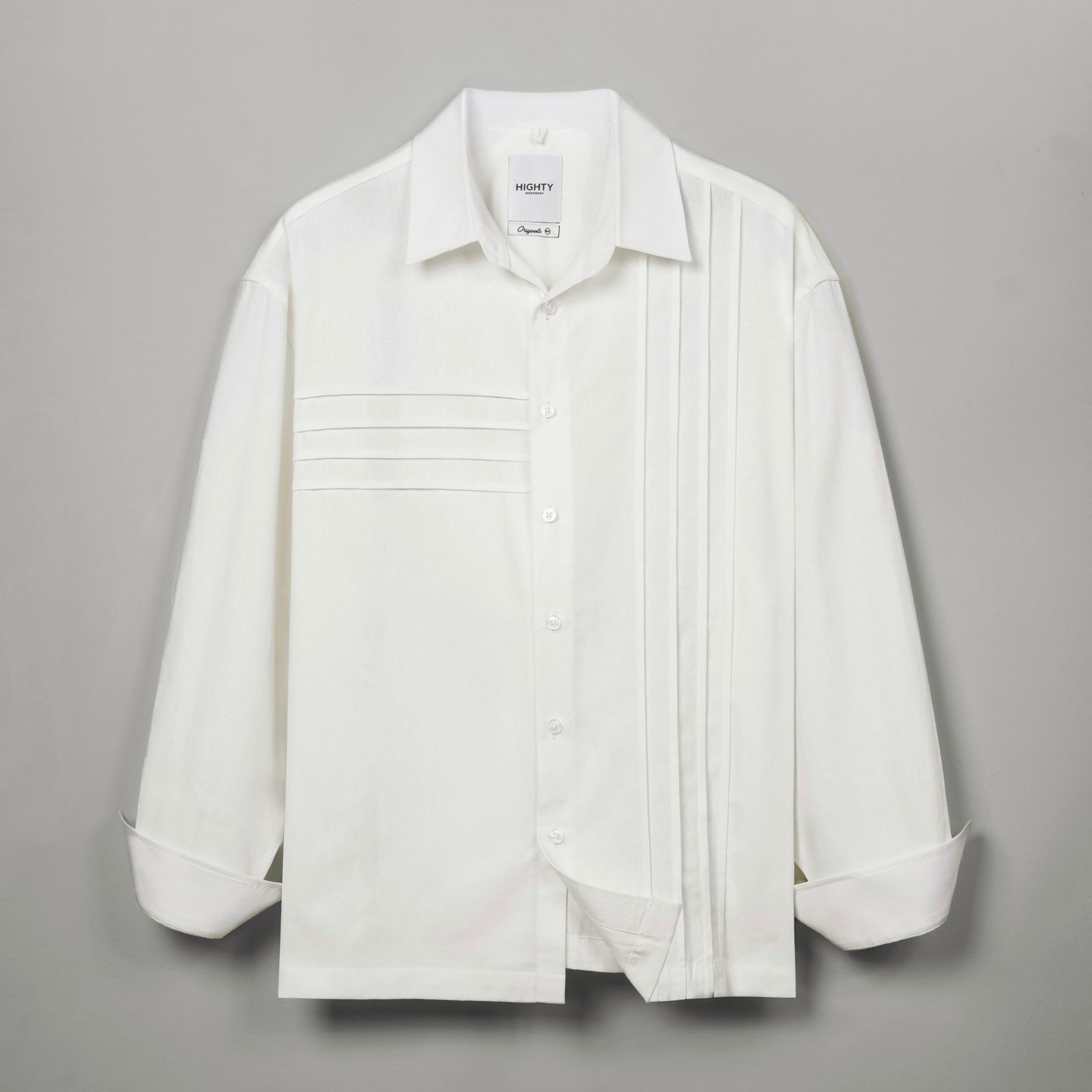 Kemeja yang terbuat dari katun twill dengan ketebalan kemeja pada umumnya dan tidak menerawang. Potongan oversize menghadirkan siluet yang lebih rileks dan modern.
