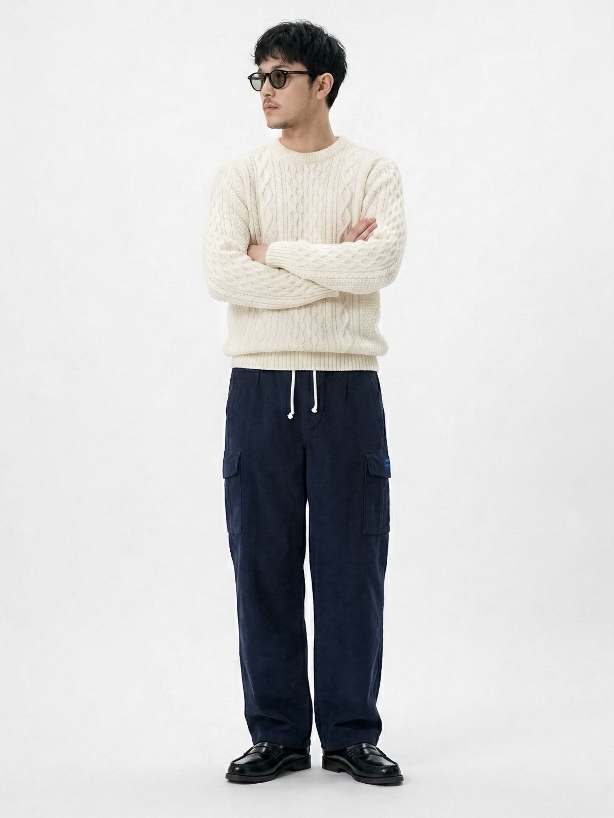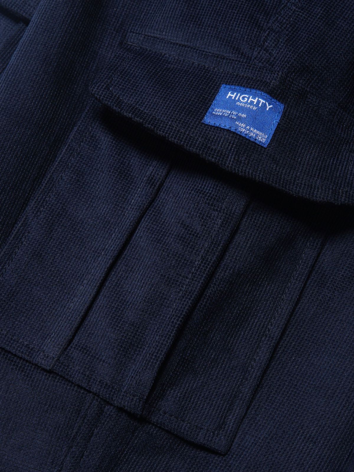 • Celana cargo yang terbuat dari bahan corduroy. Menggunakan siluet reguler.